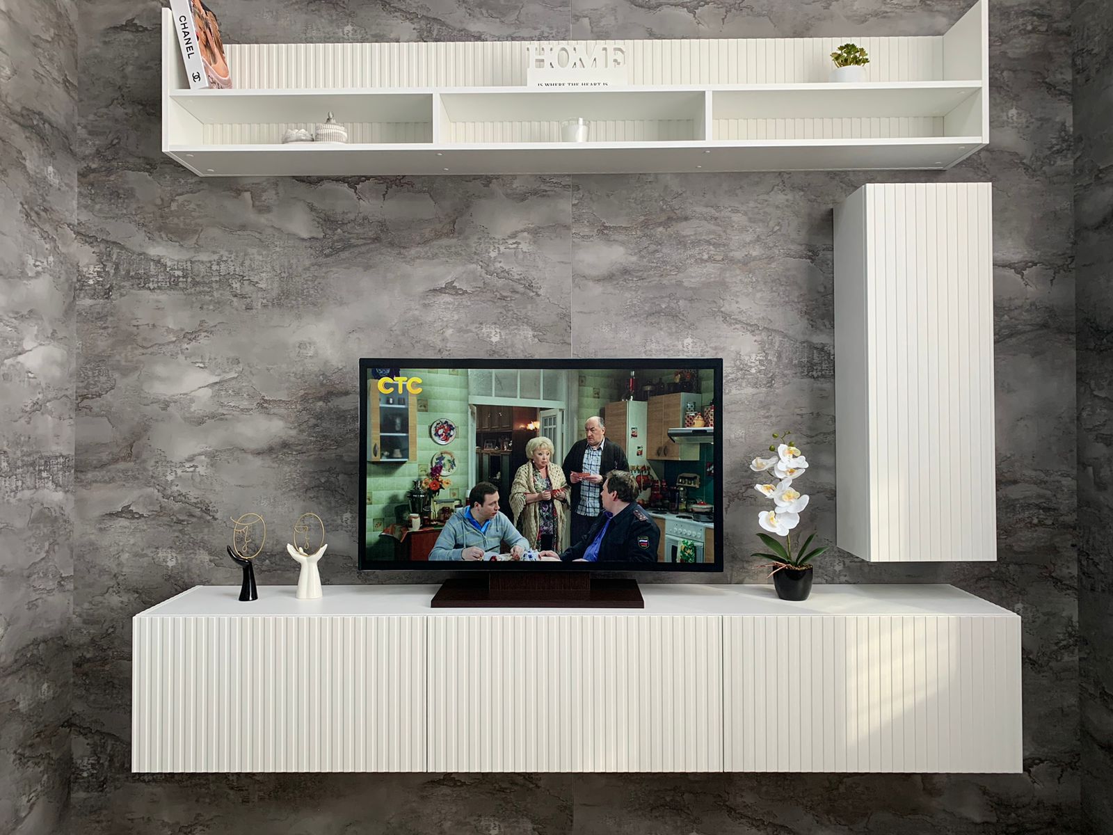 Ультрамодная и компактная гостиная Квинта станет украшением Вашего дома! Коллекция представлена навесным мини-пеналам, тумбой под ТВ-аппаратуру и открытой навесной полкой.