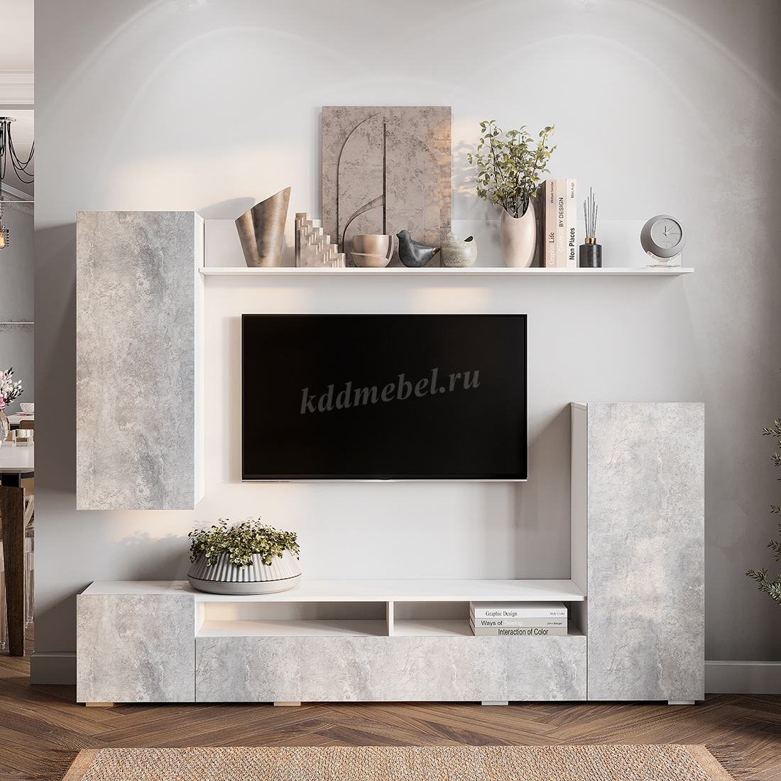 Описание Гостиная Диаманд (Белый/Цемент светлый)