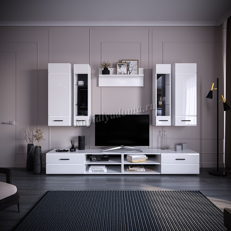 Описание Гостиная Кай (Белый/Белый глянец)