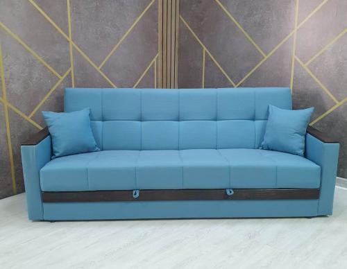 При трансформации требуется расстояние между диваном и стеной. Мебель является пристенной. Механизм «Книжка» прост и надежен в эксплуатации. Напольное покрытие в процессе раскладки не задействовано, Вы можете использовать пушистые ковры или дорогие паркеты. Емкость для хранения постельных принадлежностей с ламинированным основанием обеспечит Вам дополнительное пространство для хранения и сэкономит Ваше время при подготовке дивана ко сну. Ламинированное основание обеспечит простоту и удобство при уборке. Декоративные накладки из МДФ на подлокотниках и передней части короба, сочетают в себе представительность и элегантность, придают изящность дизайну