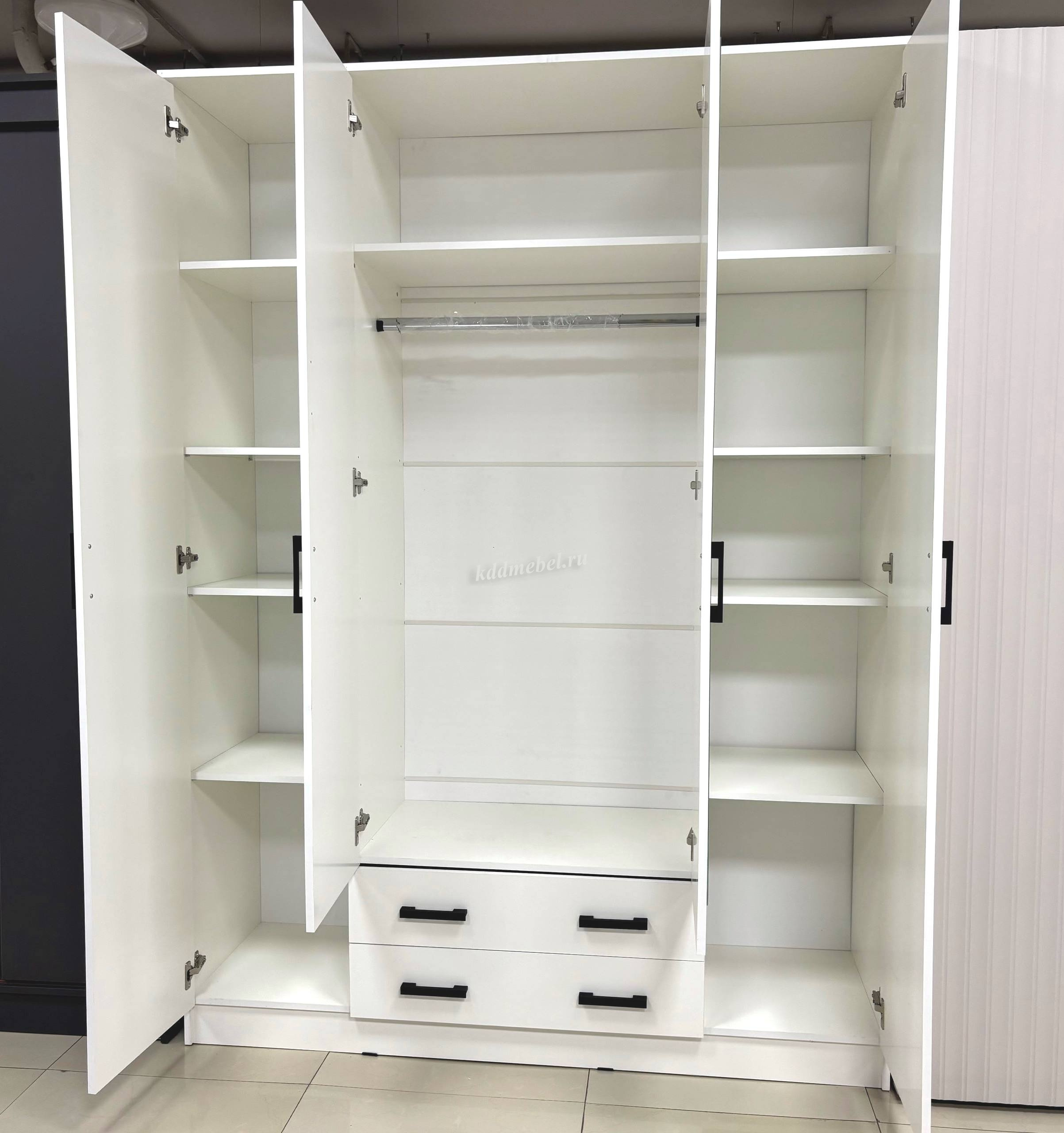 за центральными дверцами, помимо верхней полки, имеется штанга для одежды;