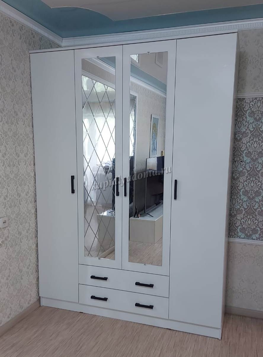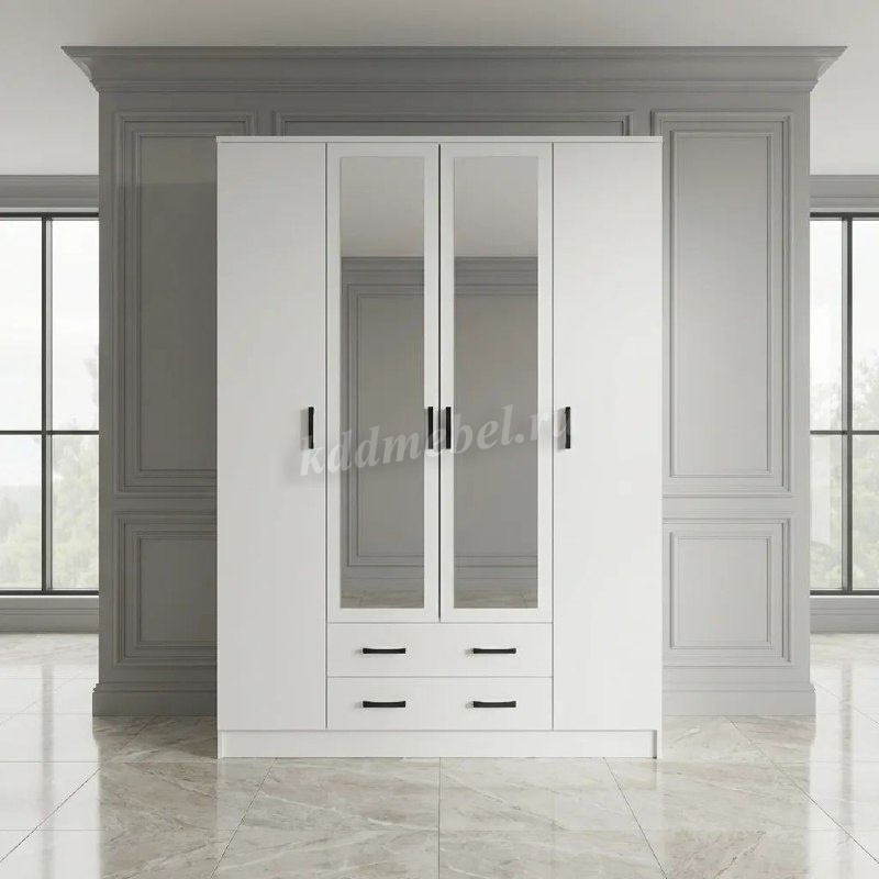 Помимо своей большой функциональности, четырехдверный шкаф Квадро отлично впишется в любое помещение Вашей квартиры либо дома, ведь у него в наличии 2 больших зеркала закрепленных на центральных дверях.