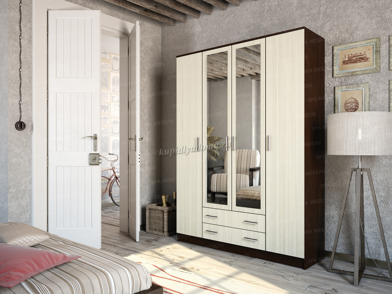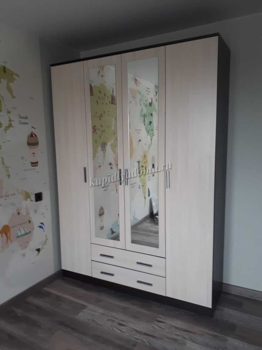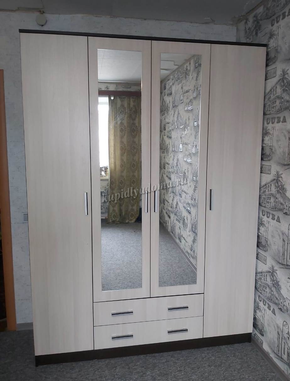Помимо своей большой функциональности, четырехдверный шкаф Квадро отлично впишется в любое помещение Вашей квартиры либо дома, ведь у него в наличии 2 больших зеркала закрепленных на центральных дверях.