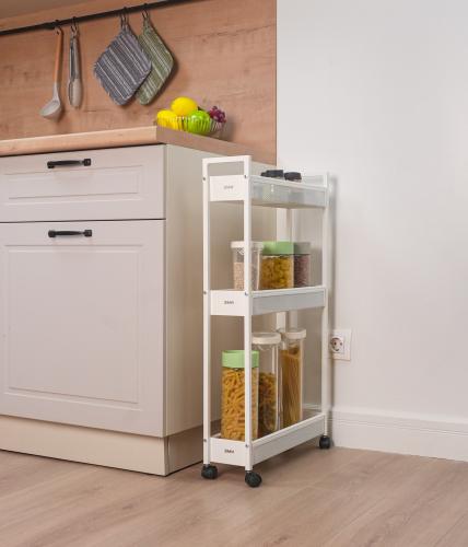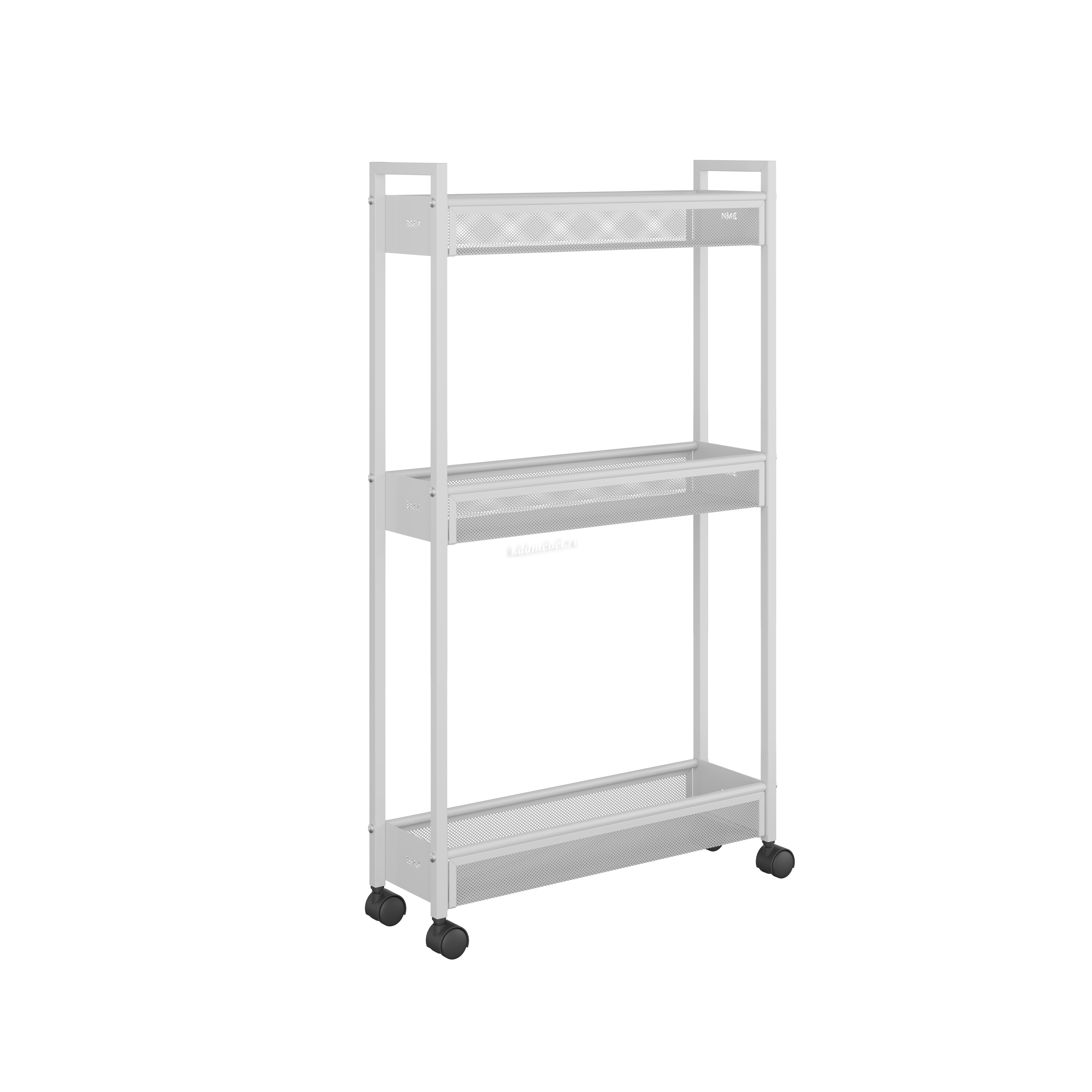Эта лёгкая, но прочная этажерка с вместительными корзинами и мобильными колесиками (360°) легко перемещается и вписывается в любой интерьер.